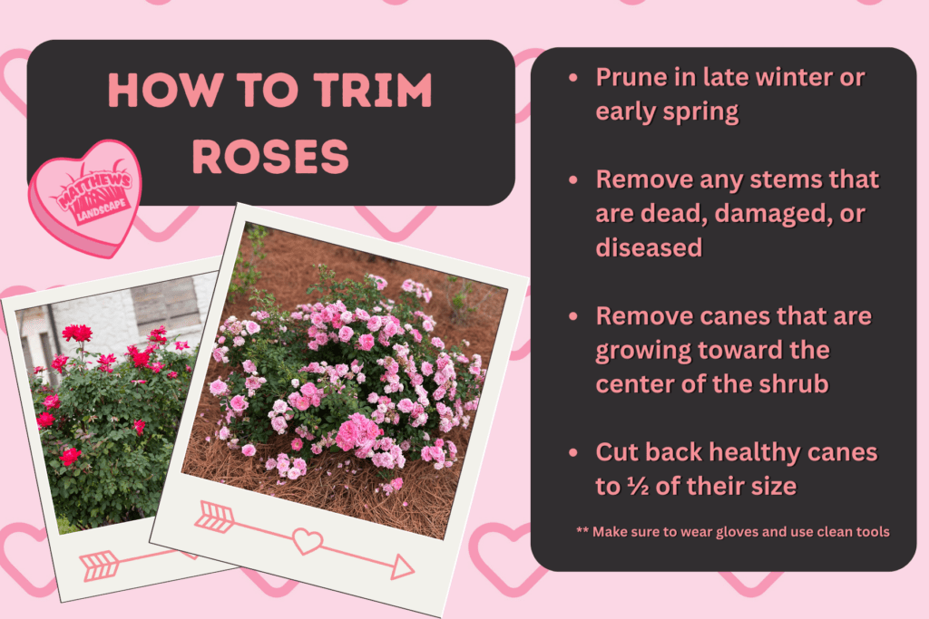Tomorrow is Valentine’s Day, which means it’s a good time to talk about roses, specifically rose trimming. For roses such as Knockout or Drift Roses, late January or February is the best time to prune, before their spring bloom cycle. A lighter trim can be done in August.